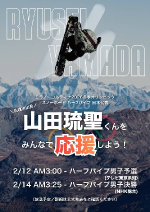 昨年度相生学院高校を卒業した山田琉聖(やまだ りゅうせい)君がハーフパイプ男子にてオリンピックに出場しています!! 2/12 AM 3:00 ハーフパイプ男子予選 (テレビ東京系列) 2/14 AM 3:25 ハーフパイプ男子決勝 (NHK総合) にて放映もされますので 皆様、応援よろしくお願いいたします!!